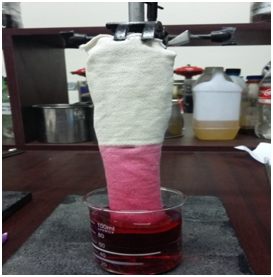Wicking test: In this test, we have observed that for 3g/l caustic soda treated sample the wicking height was 8cm, 1.3cm, 0.8cm, 0.5cm, 0.25cm, 0.2cm and for 4g/l caustic soda treated sample the wicking height was 8.3cm,1.5cm, 1.2cm, 0.6cm, 0.4cm, 0.3cm. and for 5g/l caustic soda treated sample the wicking height was 8 cm,1.2cm, 0.9cm, 0.6cm, 0.3cm, 0.2cm after 5,10,15,20,25,30 min respectively.