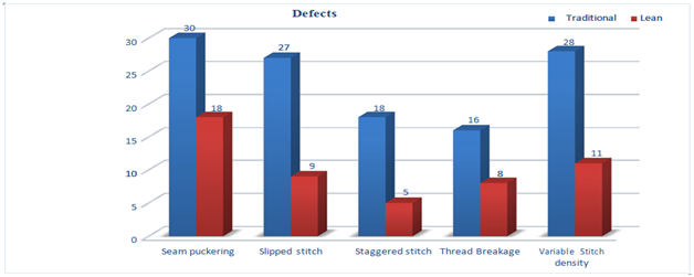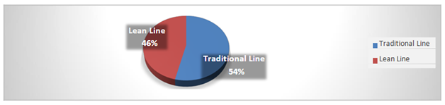 For a jacket, using traditional system our input was 100pcs/hr and output was 64pcs/hr with a productivity of 64%. But when we applied lean system then our input was same but the system was so efficient that we got an increase output of 78pcs/hr. This is a clear indication for increasing productivity. Lack of knowledge, specifically in production systems and resources management of the operations manager of Garments, resulted to the low productivity and efficiency of manpower. The lean manufacturing system is a continuous improvement method; thereby, its implementation helps the company minimize waste, enhance quality of products and definitely create its sustainability. Lean manufacturing tools contribute to the productivity of both workers and the company. The Time Study monitoring system, an output of the study, is an effective and efficient tool to enhance productivity in the entire sewing section, whose benefits extend to the whole organization.