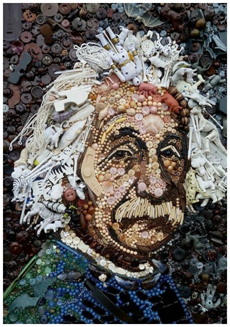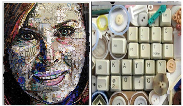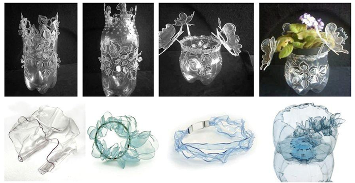 In a flood of plastic consumption, converting waste into a recreated art work will be a valuable up-cycling. For example, Maryellen Croteau, Jane Parkins and Zac Freeman are portrait artists who transform found materials into new artworks in Images 1-3. Images 4-6 show ways to use recycled plastic water bottles in real life. The artistic works of plastic bottles use a sculpture technique by cutting plastic bottles into flower shapes, as in the flowerpots in Image 4.2 Angelo Fernandes and Eline Pellinkhof are artists of planting and gardening, using plastic bottles to display in homes and stores (Image 5).3 Other creative artworks to use plastic water bottles are seen in Rod Pujante's Flower Art and Michelle Brand (Image 6).4 They developed the use of cutting and heating techniques to make decorations with waste plastic bottles. These plastic waste materials breathe in the art of life, therefore, reborn into beautiful artwork. Definitely, these artworks will be rewarding for donors who donated waste to be recycled but now turned into eco-art for the public to enjoy.