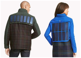 Dutch designer Pauline van Dongen unveiled the "Solar Shirt" in 2015 in Austin, and the Wearable Solar line was developed jointly with the Holland Holst Center in Holland.36 The Solar Shirt is showed to produce electricity using 120 thin-film solar modules integrated into the fabric of the garment (Image 10). In sunny weather, a solar shirt produces about one watt of electricity, so you can charge your iPhone within a few hours.36 This Van Dongen costume can also be used with other USB-compatible portable devices such as Global Positioning Systems (GPS), cameras, MP3 players, and can be stored in the battery pack of the shirt for later use. Though previous attempts to combine solar heat with fashion led to disposable auto-couture designs, Holt Center's washable interconnect technology, not to mention stretching, have made the process altogether smoother.36