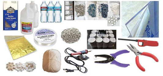 Plastic drinking straws and recycled water bottles with fashion fabric |