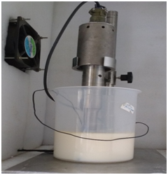 Initially for optimization purpose 2gpl neem oil was taken with a calculated amount of Tween 20 to formulate a stable nano emulsion. For preparation of emulsion calculated amount of Tween 20 was added to 100ml of distilled water in a 250ml glass beaker with continuous stirring while being kept on magnetic stirrer at room temperature for 15minutes at 100rpm to mix Tween 20 with water without forming. After mixing 0.2g of neem oil was weighed in a glass beaker and added drop wise into this prepared Tween 20 solution with continuous stirring and kept on magnetic stirrer at room temperature for about 4hour at 1250rpm, then this prepared mixture was kept under probe sonication as shown in Figure 3 at 10,000 frequency for different time interval (30, 45, 60min) is indicated in Table 1 and eighteen such formulations were prepared in this way and after completion of visual observation for one week, the best formulation was selected for the further analysis.
