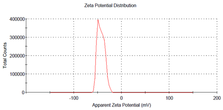 After 5month storage at room temperature increase in droplet size for 1:0.5 ratio of neem oil and surfactant was approximately 1.4times while in the case of 1:3 ratio increase in droplet size was only 1.08times, which was satisfactory for stability point of view, as immediate droplet size for 1:3 ratio of neem oil and surfactant was 34nm, so agglomeration of droplets were lesser as compared 1:0.5 ratio because immediate droplet size for that was 66nm which was also stable, But immediate and 5month later droplet size of 1:3 nano neem oil emulsion indicates good stability of emulsion. Zeta potential of 1:3 neem oil Nanoemulsions was -43.1mV which indicates good quality of emulsion which means it can be stable for longer time as shown in Figure 5.