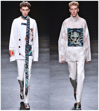 Designer’s eye to history for encouragement and fashion mostly reflects the past and it’s remain tradition always.11 Traditional motif design, when it has been apply on modern fashion design it enjoy the unique principles of collection and clothing style as well as fabric lay out.2 They have to concrete costumes style and modeling, structural dealing and theme resulting the design took place an important part. At the same time the designer use some collar variation, like bright spot color, pattern or decorative elements to make more delightful their collection through using their traditional motif design application. Designer Xander zhou 2016 Spring/Summer men’s collection has been addressed traditional ethnic elements (Figure 1). Etro Spring/ summer 2019 women’s collection Designers boldly adopt the Chinese elements and vintage flowers motif to show oriental beauty and some ethnic features (Figure 2).