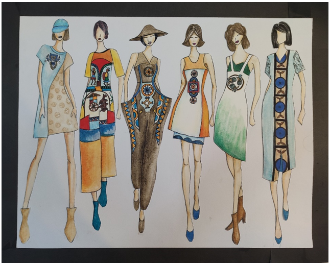 Keywords: motif, cultural elements, cultural transformation, flat sketch, collection, sustainability