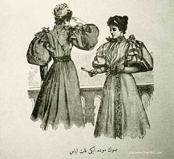 The clothing of the western military army established by Mahmud II instead of the Janissary Corps was also renewed as jackets, trousers, fez and boots. Under the influence of the modern order and clothing style that started in the military, during this period Muslim women of the palace and the upper class adopted the European clothing style. Thus, the path of modernization in clothing starting from the palace, to the upper class families with of upstanding social position, and eventually to the public was reflected. Before outerwear the change started in accessories such as gloves, socks etc. In general people acquired these accessories and new fabrics through those who went to Europe or from those who had relatives there.9 Change, especially in women's clothing, began during this modernization process. Abaya and yashmak, worn until the 19th century, which has been the most important women's garment for centuries, lost their place in clothing. Abaya and yashmak were replaced by II. During the reign of Abdülhamit (1876-1909), he abandoned the veil and chador (Picture 3) (Picture 4).1