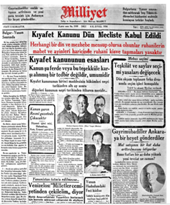 With the establishment of the Republic, the dress code became the basic policy of modernization efforts such as the civil code which gave women the right to divorce and to custody etc. By taking some elements of social structure from civilized societies, an attempt was made to establish a lifestyle with western clothing elements.13 In the years when Türkiye was restructured with revolutions; Changes such as 1924 Tevhid-i Tedrisat, 1925 Hat and 1934 Dress Codes also paved the way for social progress.14 Knowing that the most important revolution for the solid progress of the foundation that was to be laid after the proclamation of the Republic was the "hat revolution" and its subsequent clothing revolution, Mustafa Kemal Atatürk started the movement in Kastamonu on the 25th of August 1925. The hat revolution actually shows a symbol and the starting point of change. Mustafa Kemal Pasha, who sometimes dressed in civilian clothes during the war and struggle for National Independence, often preferred the calpack as headgear.