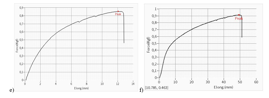 H2 (SMS) 4.674±2 Kgf, 2.634 ±2 Kgf in width, 77.4% stronger than the width, and the tensile strength indicators are 1.637±1 MPa and 0.923 ±1 MPa, respectively, which is 77.3% higher than the width. Also, the elongation percentage is 120.739±3% in width, 112.040±3%, and the elongation of the strip is 7.8% higher than the width, as shown in Figure 4 below.