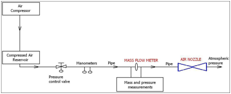 On the other hand, when the pressurized air is leaving from the compressor, its level is known in terms of the readings from the manometer. Following to the measurements, it was determined that the pressure values obtained by mass flow meter are different from the readings on the manometer. In another words, the pressure values at the compressor outlet are not same at the nozzle inlet. We believe that this difference is resulting from the nozzle geometry. Therefore, the pressure levels were measured at the nozzle inlet by the mass flow meter and they were used in numerical analyses (Figure 8) (Figure 9).