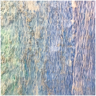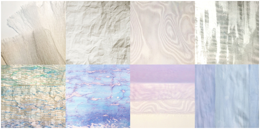 By intersecting the independent experimental trials with each other, the prototyping phase was then proceeded to the secondary level resulting in a dual-sensitive swatch.13 Step by step, the transparent polyester organza was coated with azure thermo chromic pigments and transparent-green luminescent coating on the right and wrong side respectively. The fabric was then gathered and secured by rolls of running stitches similar to the resisting mechanism of the traditional Japanese textile craftsmanship, Nui Shibori. Another layer of transparent-azure luminescent coating with higher viscosity was applied onto the surface of the gathered panel. Cracks, which allow the transparent-green luminescent coating on the wrong side of the fabric to be visible from the right side, were created on the azure thermo chromic layer along the gathers as a result of imbalanced viscosity between coatings. The hybrid swatch developed reacts to ambient thermo- and photo- stimuli and displays dynamically different visuals. The surface changes from shades of azure to light grey in contact with heat, and reacts to ultraviolet light resulting in temporary glowing surface of luminescent azure and green. Proven feasible by the secondary prototyping, the procedures and mechanism developed were adopted in the research prototyping phase.