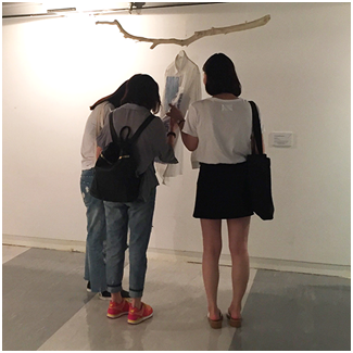 In order to critique and examine the realized creations, an evaluation stage is briefly proposed here. Since the significant outcomes of the constructive design research are physical creations, usually suitable and decent for exhibition, a showroom based evaluation approach is believed to be appropriate. Observed from the exhibition in the Fashion Gallery of the Hong Kong Polytechnic University, and the imagery records of the exhibitions in Oaxaca and Paris, audiences were found positively attracted by the dual interactive properties of the prototype (Figure 7).