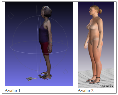 For the design process, personalized programmed avatars also assist a designer’s visualization of a garment before production.10 However, if the designer is creating a garment for himself or herself, an avatar that matches one’s own body as closely as possible offers a more realistic visualization of the garment. Computer simulation is providing the most effective way to detect fitting issues and construction problems that may occur during the production process. Also, the selection of appropriate avatars for mass production can be challenging for manufacturers. This study explores and compares fitting simulation issues related to two types of avatars.