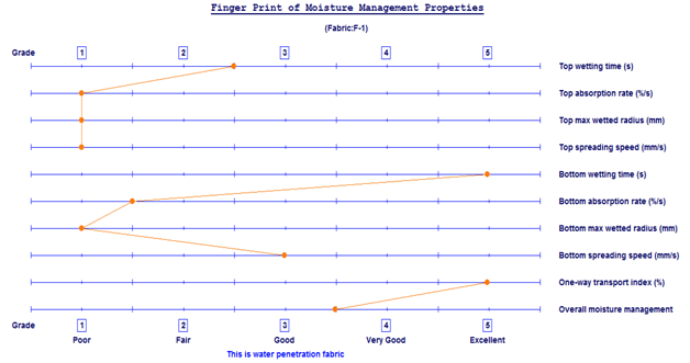 Figure 2 Finger prints of OMMC of ‘Ideal Fabric’ grading ‘One-way transport index %’ as an ‘Excellent’.