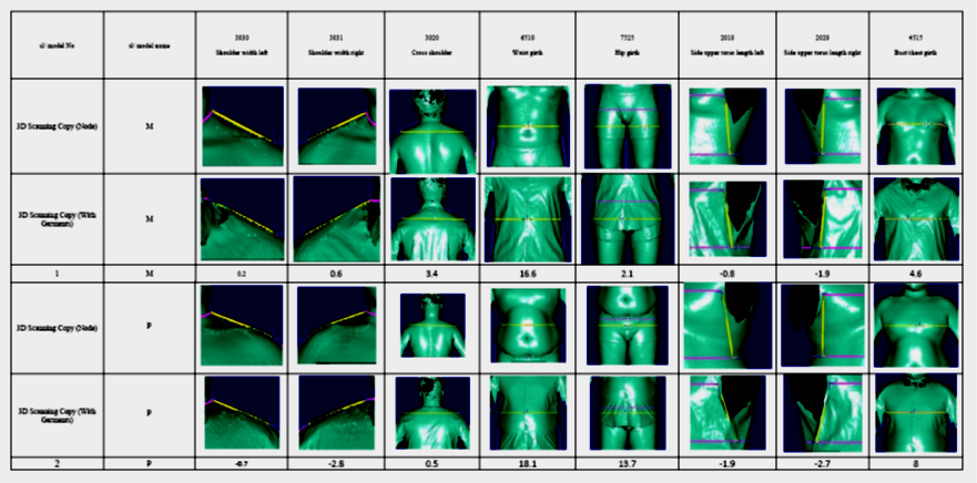 Microsoft Excel and the 3D body scanning method with Human Solutions 1.0 software were both used. All of this is accomplished without physical touch, in a brief amount of time, in a way that is secure and comfortable for people, and is actually highly valuable, especially when there are too many subjects. From the two typical bodies, it is clear that the balance and fit points are different. That’s why the author chooses the way to recommend the actual fit and balance according to body shape of male. From this research author find out two miss-fit points for two male. So, we can easily recommend fit and balance for each type of body shape.