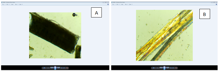 Figure 4 Longitudinal view under scanning electron microscope. A) un softened B) softened fiber. In fig4b Due to softening the palm leaf sheath fiber got a cylindrical shape.