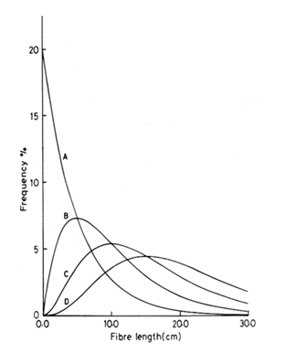 A study of fibre length-frequency distribution depending on methods of sampling and testing may lead to a general form of Gamma distribution function. It may be mentioned that for Gamma distribution Trivedi3 the density function of the random variable x is given by