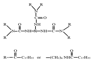 The third water repellent chemical is poly alkyl urethane resin (Figure 3). It is a renewably sourced fluorocarbon free water repellent chemical. It is environmental friendly as it contains 63% renewably resourced material obtained from different plant-based sources. It efficiently repels water and water based liquid like curry stain, fruit juice, tea, hot coffee, red wine etc. from cotton and blend fabrics.