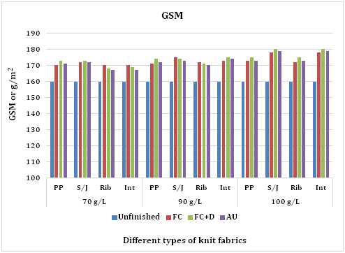 Moreover, from the data sheet (color change), it is found that light fastness characteristics are not affected by FC, FC+D treated all knit fabrics except alkyl urethane. Furthermore, FC, FC+D treated fabrics shows same light fastness as untreated one though for alkyl urethane treated fabrics, it slightly decreased for all knit structure.