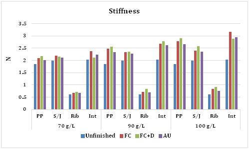 Unfinished fabric’s stiffness (N) |