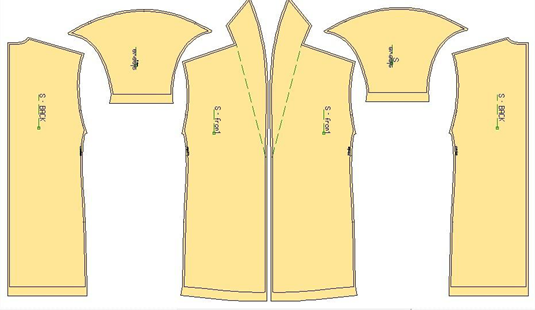 The most crucial step was to define the seam allowances value – pattern nesting is highly influenced by the cutting perimeter. A method studied has revealed the solution of using variable values for seam allowances.14 However, given the poor aesthetic on the inside of the garment resulted by using such technique, this doesn’t stand for unlined garments. Moreover, the sewing technology is being limited to a simple stitch, with possible serged edges. Considering these possible results, all seam allowances that were to be assembled have been defined with constant values.
