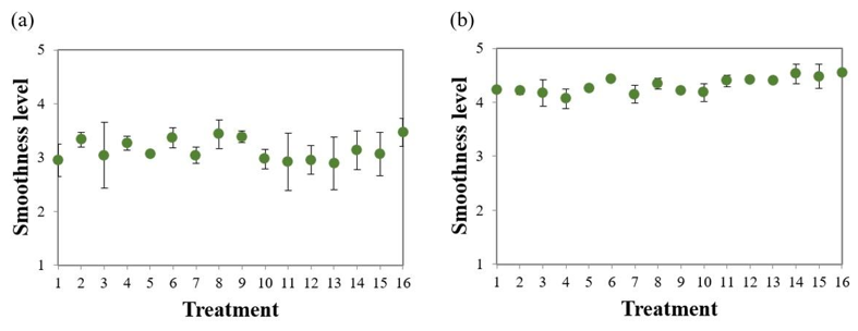 Each evaluator checked the 12 samples one by one, comparing them to the five standards with known smoothness levels. All analyses were performed individually, without any external interference in determining the values.