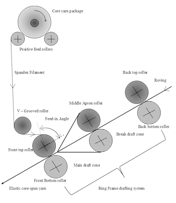 Nowadays, dual-core yarns comprising three components are currently in vogue. Different components of dual-core yarn provide different types of advantages. Outer sheath layer provides the appearance of the yarn, and the inner core component provides required strength and extensibility. The preparation technique of dual core spun yarns is simple and a little bit different to ring spun yarns. Core spinning techniques are demonstrated by researchers where some extra attachment is required for manufacturing dual core yarns.3