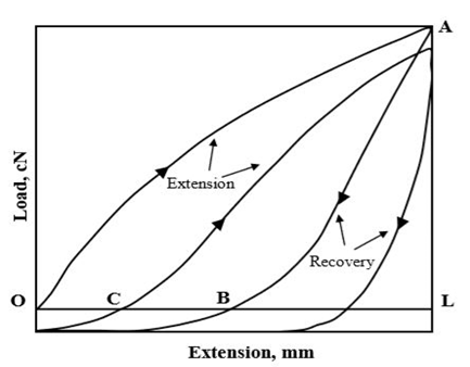 The recovery properties refer to the ability of the textile material to recover from deformation on withdrawal of load. When a core spun yarn is subjected to loading and unloading, it would allow structural modification. The degree of structural modification would decide the behaviour of the yarn due to the application of load. The recovery behaviour includes immediate elastic recovery, delayed recovery (recovery with time) and permanent deformation.