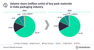 Retail is one of the major contributors to the Indian economy and has been steadily growing year on year. Indian retail has been experiencing a gradual shift towards modern retailing formats attracting multinational companies and thereby resulting in increased demand in spaces such as apparel, F&B, FMCG products, cosmetics etc. This has led to an increased demand for innovative and attractive packaging concepts. The shift is more towards flexible packaging with polymers being majorly used for packaging (Figure 3).