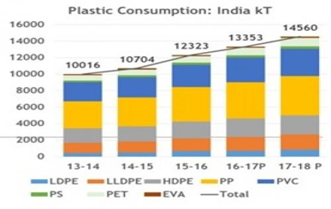 India is the 15th largest plastic polluter globally and generates almost 26,000 tons per day as estimated by the Central Pollution Control Board (CPCB). Of this, approximately 43% of manufactured plastic in the country is used for packaging purposes, most of which is single-use plastic waste. Of the 26,000 tons of plastic waste produced,94% are thermoplastic or recyclable materials such as PET (polyethylene terephthalate), and PVC (polyvinyl chloride) which can be recycled utmost 7-9 times before they can be disposed of. This highlights the lack of efficient waste management systems in India. Since majority of the plastic used is by the packaging industry, finding a substitute is critical as it has been estimated that plastic packaging industry is estimated to grow to 22 million ton a year by 2020 out of which almost 50% is single-use plastic, according to a study by Federation of Indian Chambers of Commerce and Industry (Figure 1) (Figure 2).2