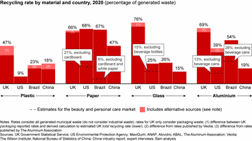 The end destinations for all polybags are retail stores, consumers' homes via e-commerce and distribution centers due to e-commerce returns and repacking operations. These poly bags etc are finally sold to waste collection services by the retailers and DCs. Generally, recycling rates from the commercial collection are much higher than from household collection. 41% of packaging is recycled in Europe with the rest being sent to landfill or incinerated. In the USA consumers have the choice to deposit packaging in-store drop-off locations. In Europe, Germany, Netherlands, Finland, Iceland, Italy, Norway, Portugal, Spain and Sweden plastic packaging is collected at the curbside from consumers. These plastic packagings are recycled into trash bags or incorporated into hard products such as plastic lumber.8 With Extended Producer Responsibility’ (EPR) schemes being the norm in most countries, companies only use packaging that is either recyclable or has recycled content. For example, the U.K Government has proposed to tax packaging without at least 30% recycled content. The European Commission has mandated that packaging in the EU market should be either reusable or recyclable by 2030. Germany by its new law on packaging vides Verpack G, promises incentives for recyclable and sustainable packaging. Many US states are pursuing legislation including EPR, single-use plastic bans, and waste reduction targets. Retailers like H&M, Stella McCartney and Bestseller have pledged to make all plastic packages reusable, recyclable or compostable (Figure 11) (Figure 12).8