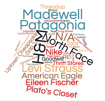 To further investigate awareness, participants were asked to list three brands or retailers that currently offer these programs and cloud visualization was used to depict the results. (Figure 4: Consumer Brand/Retailer Awareness) Of the 93 that were aware of take-back programs, listing three brands or retailers led to a potential of 279 responses. However, only 162 responses were collected. When reading Figure 4, the larger the name, the more frequently the brand or retailer was mentioned. From the data collected, participants were able to identify 42 different companies that reportedly had take-back programs. It is important to note that not all brands and retailers listed followed the classification of take-back programs. Of the top 10 brands and retailers respondents most frequently listed, two were not brand or retailer take-back programs. Based on the data collected H&M was the retailer respondents were most aware of for their take-back program, followed by Patagonia, Madewell, North Face and N/A (or unable to identify). (Table 2: Top 10 Brand/Retailer Take-Back Programs) For the purpose of this study, the researcher is interpreting N/A as unaware of brands and retailers currently using take-back programs. It is significant that there was lack of understanding or identification of take-back programs by the respondents. After a description was given, many respondents still reported consignment stores and thrift stores such as Plato’s Closet and Goodwill as take-back programs they were aware of. These results indicate there is a strong misunderstanding of the take-back programs and the distinction between different alternative clothing disposal methods. Results show that there is a lack of awareness between millennial consumers and take-back programs. This support the theory of planned behavior and that internal factors, such as awareness, affect perceived behavioral belief which then leads to the actual behavior.