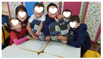 The cow's destination was the school's kindergarten class, for they were the children who symbolically demonstrated the most contact with it. They loved the opportunity to paint the cow and thus earned the right to have it in their classroom as a collective toy. The children in this class christened her with the name Betina, and she is currently the children's favorite toy, as can be seen in Figure 5: