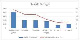 Table 3 Tensile strength (N) and extension (%) results for untreated sample, C1 and C2 recipes.