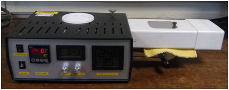 Permatest: The water vapour permeability and the resistance to evaporative heat loss of the fabrics were tested by using the Permetest Instrument, Sensora Instruments, and Czech Republic in Figure 2. This instrument is based on the skin model, which simulates dry and wet human skin surface in terms of its moisture, water vapour and evaporative heat permeation. The instrument uses the same principle as specified in ISO 11092 developed by Hohenstein Institute, whereby a heated porous membrane is used to simulate the sweating skin. The heat required for the water to evaporate from the membrane, with and without a fabric covering, is measured (1). A heated porous membrane is used to simulate sweating skin. A current of air removes the micro-climate that develops above the surface of the membrane. The heat required evaporating the water from the membrane with and without a test fabric covering is measured. The fabric produces resistance to evaporation and therefore less heat is required. The results are used to calculate the relative water vapour permeability as a percentage of the control test without the fabric covering, and the resistance to evaporative heat loss in m2PaW-1. The specimens that were used for measuring the thermal properties in the Alambeta instrument were also used for testing on the Permatest apparatus.
