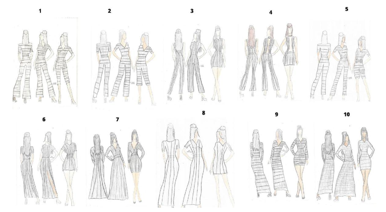 Figure 4 shows the generation of alternatives drawn up by the author, containing five transformable dresses and five jumpsuits.