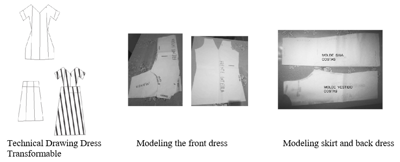 The study had three specific objectives, the first of which was to revisit the concepts of anthropometry, ergonomics and transformable modeling and apply them to fashion products. The second objective was to generate fashion alternatives/designs to make two looks (2 transformable garments that can become four garments), creating ideas that solve the problem proposed by the work. Of the 10 alternatives generated, two looks were chosen for making. The third objective was to develop the transformable pattern and make the clothes; the production of the garments was based on the application of versatility in two fashion looks.