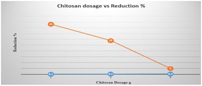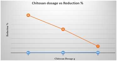 The chitosan dosage VS BOD reduction % shown in Figure 8.