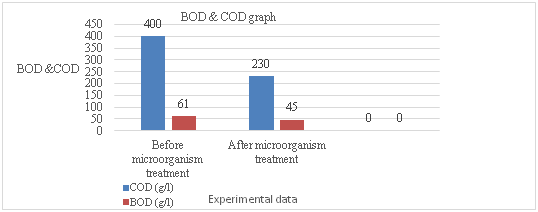 This process is usually used in waste water with a COD of less than 3000mg/L. The COD level reduced than before COD but is not perfect because COD value is not within the limit. But BOD range is satisfactory. The COD value is not perfect so reduction percentage was not measured. But the BOD reduction percentage for microorganism process is 27% (Figure 9).