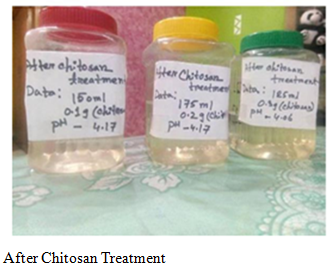 Both of these methods are environment friendly. But Comparing between chitosan and microorganism treatment chitosan treatment shows most efficient, cost effective and time effective result.15−17