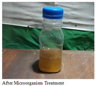 The waste water treatment conducted by microorganism got better result but not perfect as chitosan treatment. For the microorganism treatment the report showed that more quantity microorganism was needed to reduce BOD & COD. And the minimum time required for this experiment is 83 hours. So it requires more time than chitosan treatment which needs only 48 minutes.