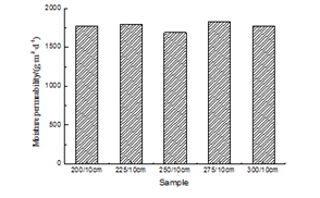 Moisture permeability: The Moisture permeability was tested in accordance with standard GB/T 12704-2009 "Textiles-Determination of water vapor transmission-Permeable cup method". The test was carried out in selection of FX3150 automatic moisture permeability tester (Swiss textile company TEXTEST). Each sample tested 3 times and averaged.