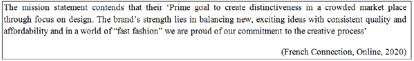 The mission statement contends that their ‘Prime goal to create distinctiveness in a crowded market place through focus on design. The brand’s strength lies in balancing new, exciting ideas with consistent quality and affordability and in a world of “fast fashion” we are proud of our commitment to the creative process’