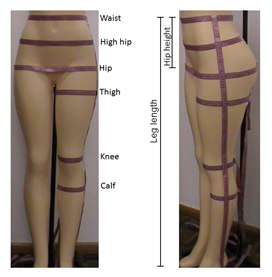 The measurement between the waist line and the calf line was measured vertically by the lateral. |