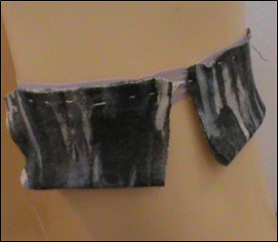 Figure 6 Fabric sewn on the jeans, identifying the points and the shape of the insertion of the pressure sensors.