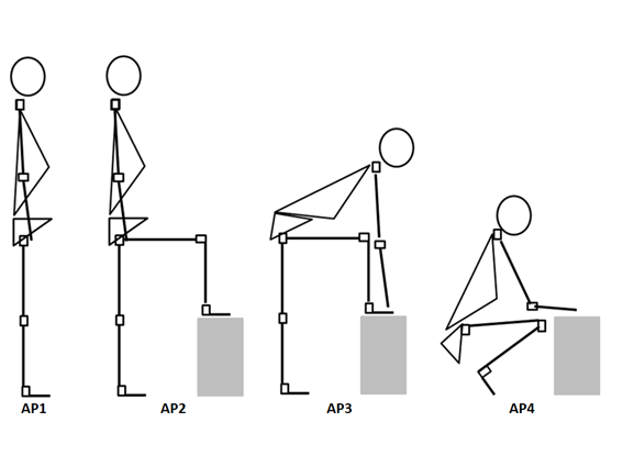 According to the movements described in Table 6, the positions are represented in Figure 8.