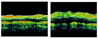Optical Coherence Tomography (OCT) is a promising as well as noninvasive retina imaging technique that provides cross-sectional images of the eye retina with quality resolution pictures. During the OCT process, six linear scans centered on the Optical Nerve Head (ONH) is obtained, and the OCT software derives the ONH parameters in an automatic manner. The scan also gives horizontal and vertical cup-to-disc ratios. For the measurement of Retinal Nerve Fibre Layer (RNFL), the usable RNFL thickness circle scan mode which consists of 3 scans that are circular with twice the radius of 3.4mm centered on the ONH should be used. Thus the overall, average and quadrant RNFL thicknesses should be calculated automatically. At the OCT scanning, the subject the clinicians should give instructions to fixed on a target internally to bring the ONH within view of the practioner. For the analysis of RNFL thickness the best-quality scan such as focused picture of the fundus, sufficient signal-to-noise ratio, and the presence of a centered, circular ring around the ONH should be chosen. The average of the RNFL thicknesses in each quadrant of the study eye should be compared with the AD patients and the normal subjects. The OCT image of normal and AD is shown on Figure 3. From the figure itself we can identify the loss of nerve layers as well as the thinning of the layers.