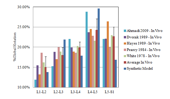 Figure 6 Comparison of Percent Global Segmental Motion Response between Synthetic Model and In Vivo Motion Patterns.30–35