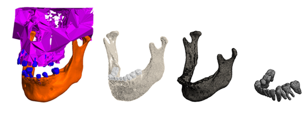 Biomodels are commonly used in computational biomechanics, since, thanks to their biofidelity, they allow, through numerical analysis, the study the mechanical behavior of external or internal factors that act on the various anatomical structures.3 These analyzes are generally carried out, using the finite element method (Figure 2). The realization of the Biomodels is possible thanks to the use of DICOM files generated by tomographs and the magnetic resonance, since these present a series of cuts of the tissues with quality that allows the reconstruction of the Biomodels and their differentiation between the hard and soft tissues that conform certain anatomical structures (Figure 3).4