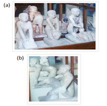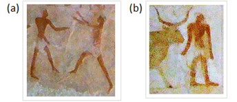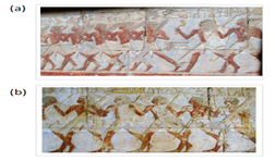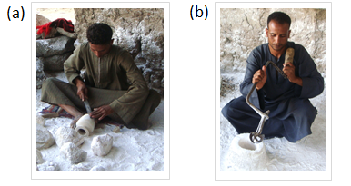 Figure 7 Different body positions of ancient Egyptians producing a pottery. Person at the background in (a) assumed dangerous leaning position.2