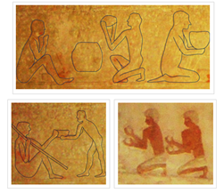 During still other work, e.g. during producing a pottery, ancient Egyptian workers assumed positions: leaning while standing, leaning on four limbs, kneeling, sitting on the ground. (Figure 7)